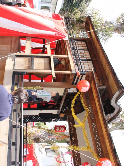 だんじりの前部は引き出し式の舞台に細工されているため、淡路島のだんじりに精通している方からは『淡路洲本型 芸だんじり』と呼びかわされているよう。