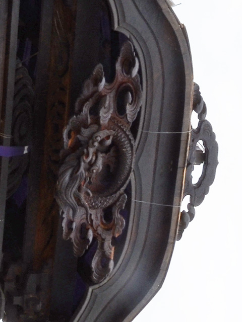 屋根の懸魚に彫られた「龍」の彫刻がひときわ目を引き、明治期に井上青竜亭が細工したと言われています。