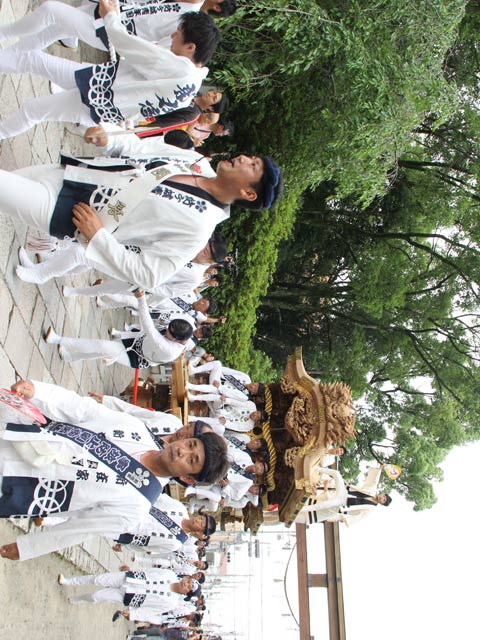 大鳥居の前は「やりまわし」で宮入りかと思いきや、そのまま「止めまわし」。