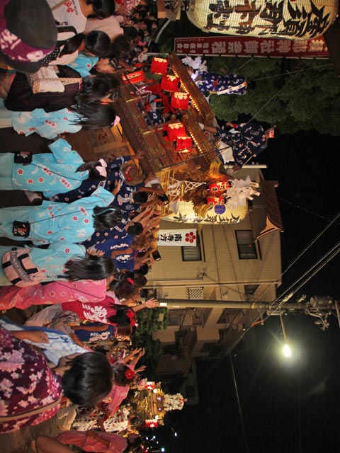 地車の周りでは、お姉ちゃんたちも踊る踊る・・・・。
