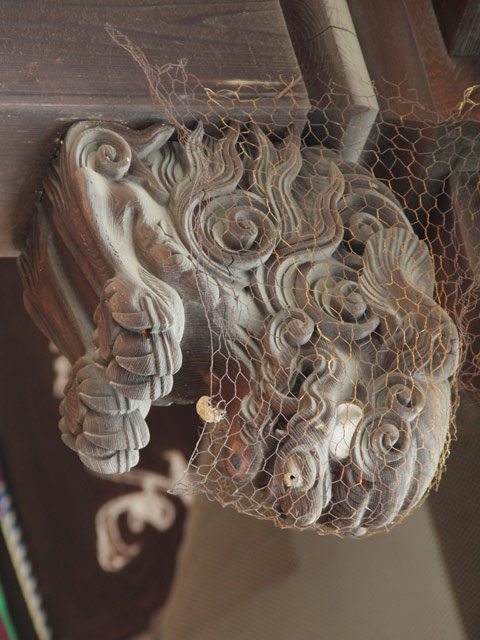 また、その両脇にある阿吽の「唐獅子」の木鼻も、行陽の作。