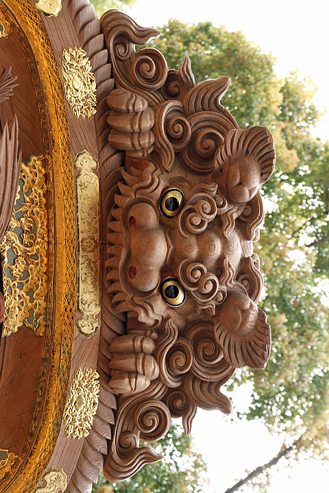 また『獅噛み』に目を移すと、正面の獅噛みと、後ろの二面の獅噛みでは、顔つきが微妙に違うのも見て取れます。