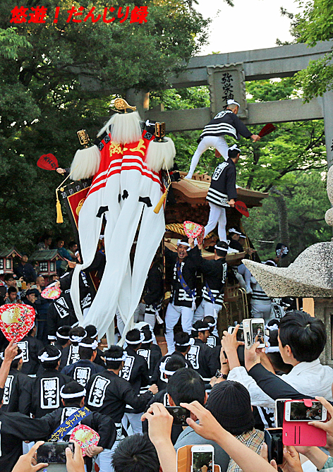 この後だんじりは再び駅下りの商店街を浜方向へと進み、最後は、通称・春木本部前(この日は本部は設営されてない)を大阪方向へ遣り廻し!