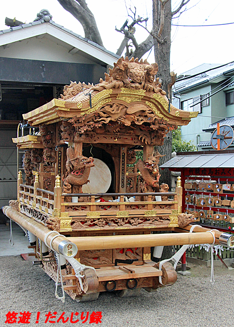 氏神・比枝神社の境内に小屋があり、秋の祭礼をメインに現在は夏の祭礼、そして11月の『だんじり in 大阪城』にも毎年参加しており、今や地元の人たちのみならず、多くのだんじり好きの目にも馴染みのあるだんじりだと思います。