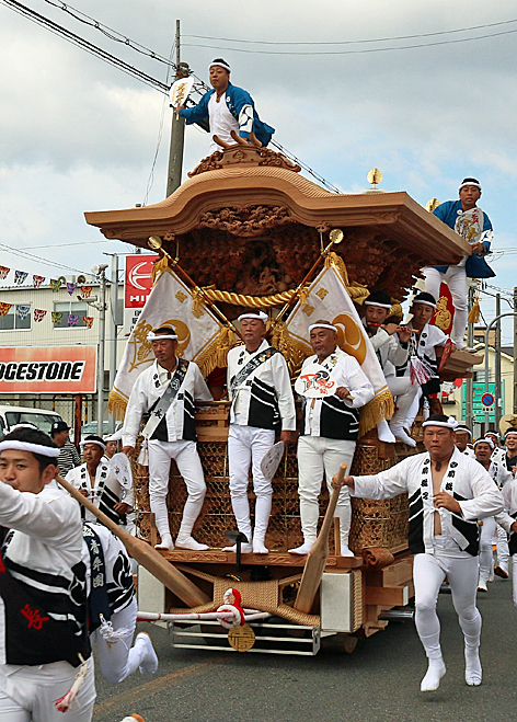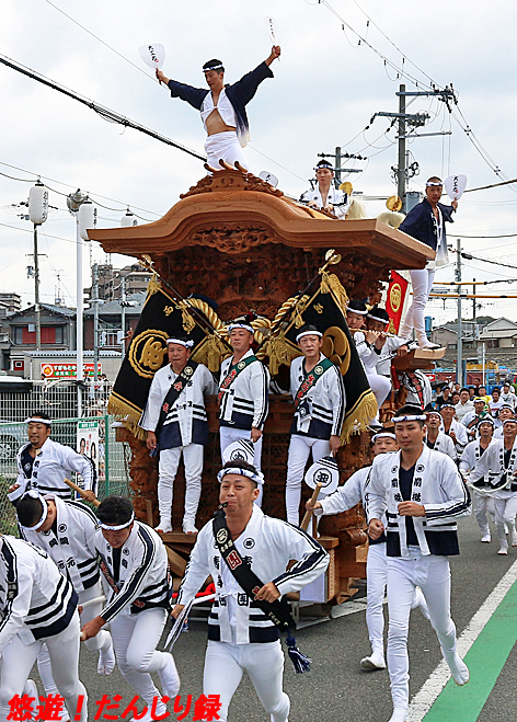 平成19年に新調されたこのだんじりは、《植山工務店》現棟梁・佐野和久 師が、先代・植山義雄 師の跡目を継いで最初に手がけただんじりで、脇棟梁・七野徳重 師とガッチリ手を組み、彫師に《木彫近藤》近藤 晃、《木彫高濱》高濱輝夫、《木彫片山》片山 晃 各師が華を添える作品となっています。